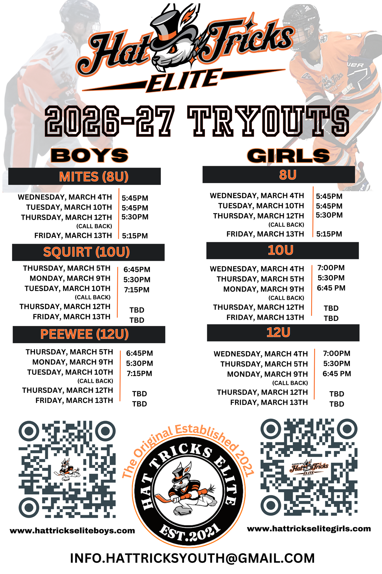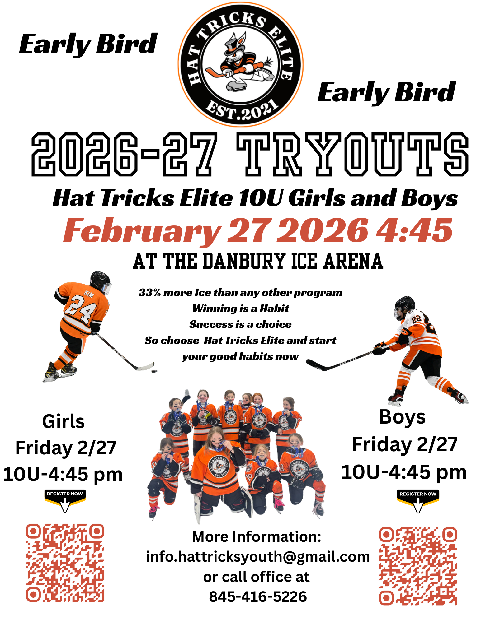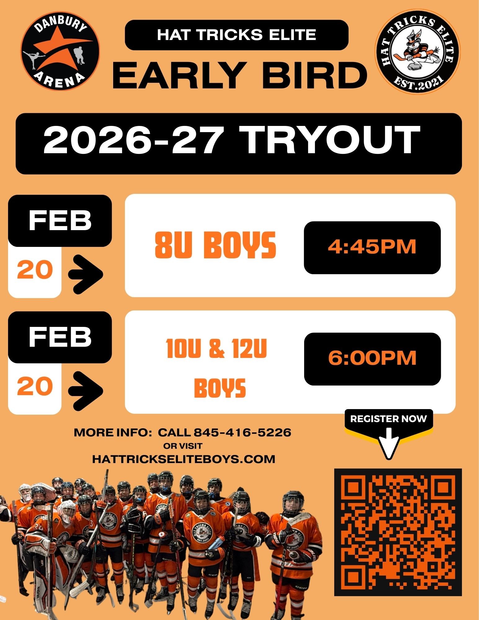 Building on the successes of its existing youth hockey offerings, Danbury Arena is excited to announce the launch of their elite-level youth Travel Hockey teams for both boys and girls. Entering the upcoming 2023-24 season, the Hat Tricks Hickey will be fielding full and split-season teams at the 8U, 10U,12U,16U, and 18U levels. All teams will compete and play out of Danbury Ice Arena.