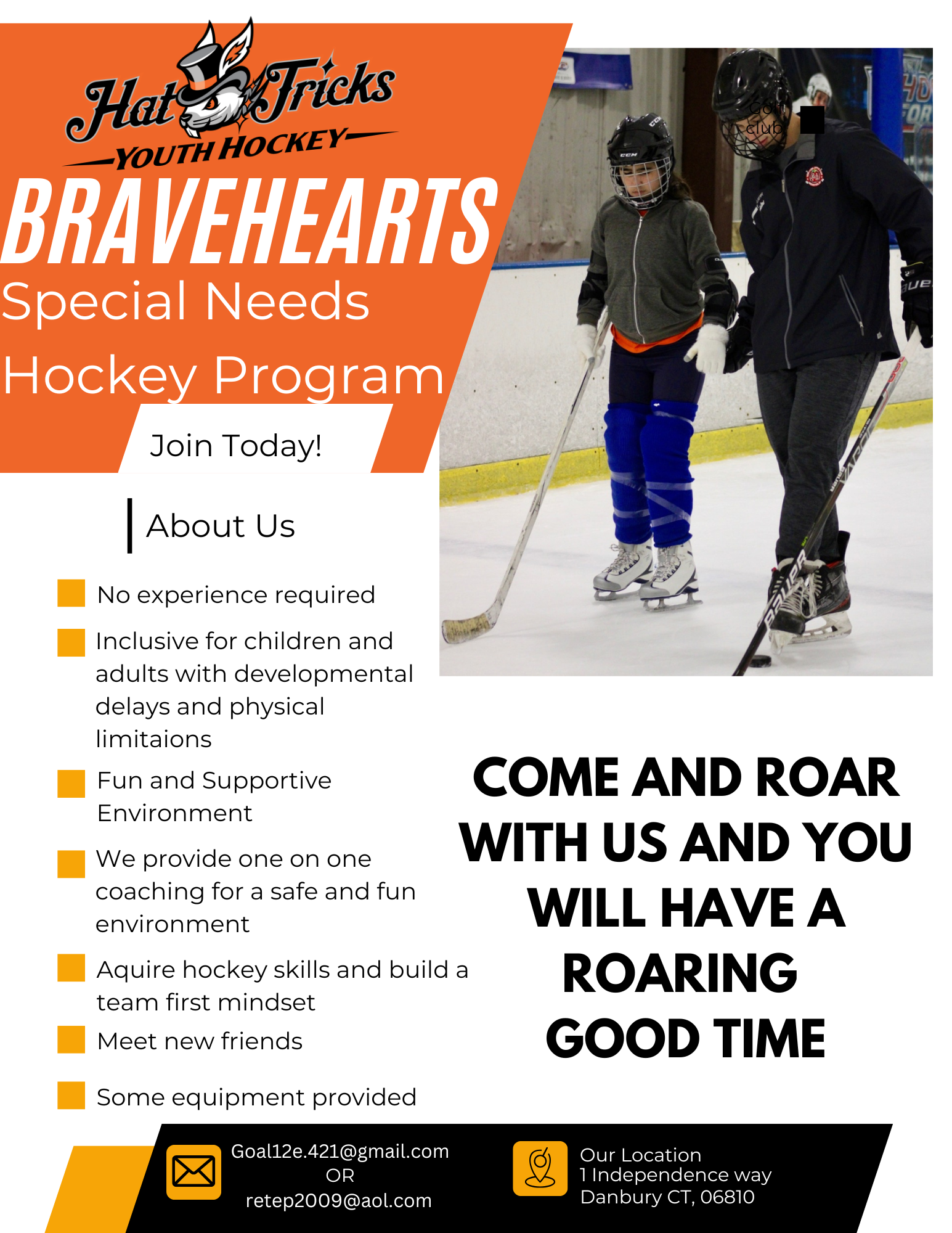 We believe...... Hockey can enrich the lives of people with developmental disabilities and their families. Having fun is a priority.... not an option. Hockey Helps people to come together in all aspects of life. People across a wide variety of ages, skill levels and range of their disabilities can be shared by sharing the ice surface in both training and competitions.